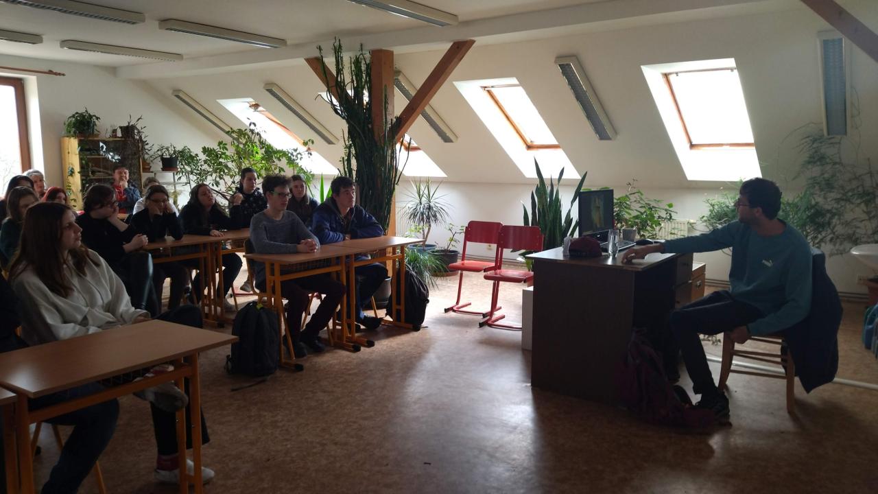 Ve čtvrtek 7. 3. 2024 nás navštívil holýšovský cestovatel Jakub Greschl s přednáškou Nic není nemožné, tentokrát s podtitulem Americký sen - cesta za mé vlastní hranice. Svými zážitky a fotografiemi zaujal čtyři desítky žáků z odborného učiliště.